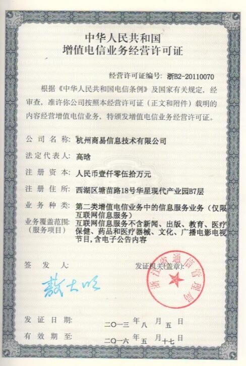 杭州商易信息技術(shù)有限公司 © 2000-2014 網(wǎng) ICP備案:浙B2-20060159 經(jīng)營(yíng)許可證編號(hào):浙B2-20110070 浙公網(wǎng)安備 33010602000230號(hào)